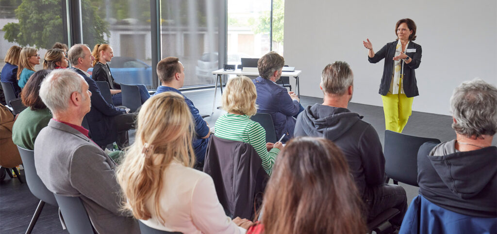 Annette Hanfstein, Geschäftsführerin Operativ der Agentur für Arbeit Nagold-Pforzheim begrüßte die Teilnehmer. „Uns ist es heute wichtig, mit Ihnen in den Austausch zu kommen, denn uns interessiert, was sie konkret umtreibt“ sagte sie. „Mein größter Wunsch wäre, dass der Dialog nach dieser Veranstaltung nicht abbricht, sondern dass wir Folgekontakte vereinbaren, bei denen es ganz konkret darum geht, Weiterbildung oder Qualifizierung ihrer Beschäftigten in ihrem Unternehmen umzusetzen.“